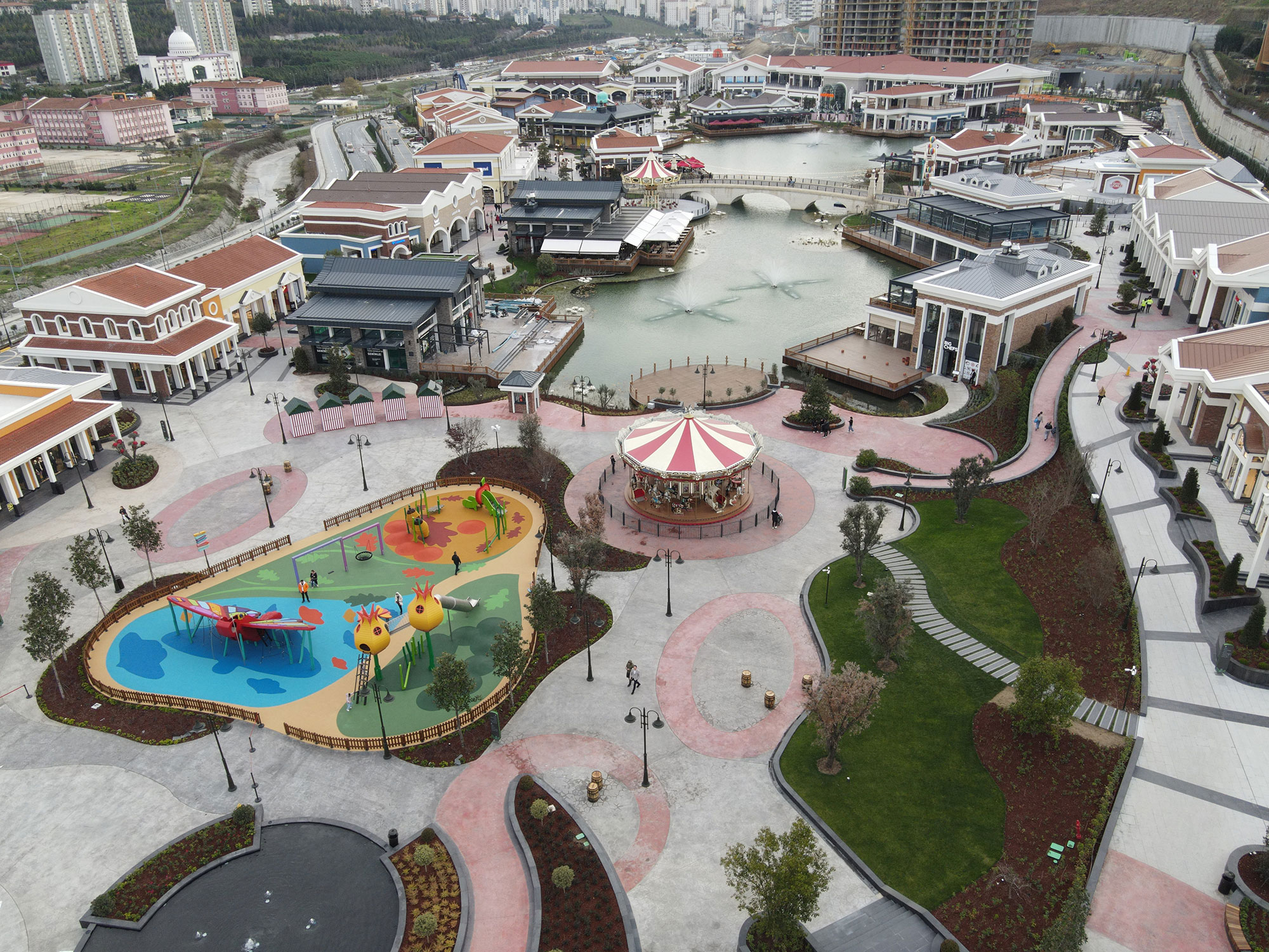 The project, which enhances the quality of life for nearby residents, has become one of the must-visit spots for tourists in Istanbul thanks to its extensive all-day entertainment opportunities, accessible play areas, world-class theme park equipment, indoor entertainment and experience center, live performance venue, a mix of products and brands that support the social and instant consumption needs of families with children and young professionals, bistros, cafés and other dining options appealing to all tastes and budgets, as well as its 15,000 m² biological pond at the heart of the project and captivating landscape elements.